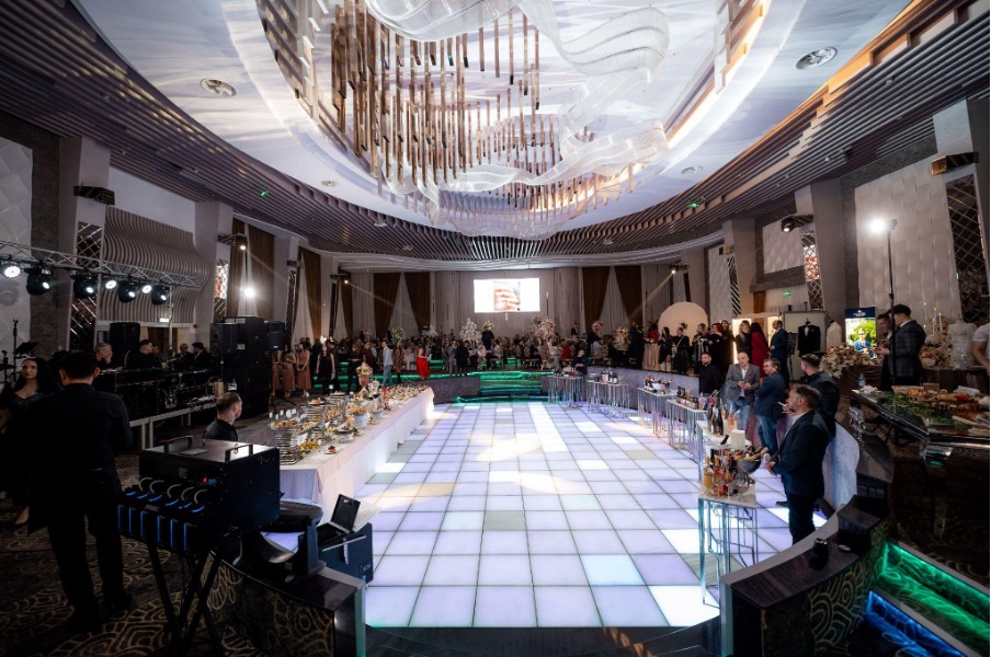Mai mult, acest ton versatil permite combinatii spectaculoase de decor, fie ca mirii aleg accente pastelate pentru un efect diafan sau contraste puternice pentru un look extravagant. Cromatica acestei sali de nunta din Iasi functioneaza ca o panza ideala pentru orice concept de eveniment, punand in valoare atat tematicile romantice, cat si pe cele moderne si indraznete.