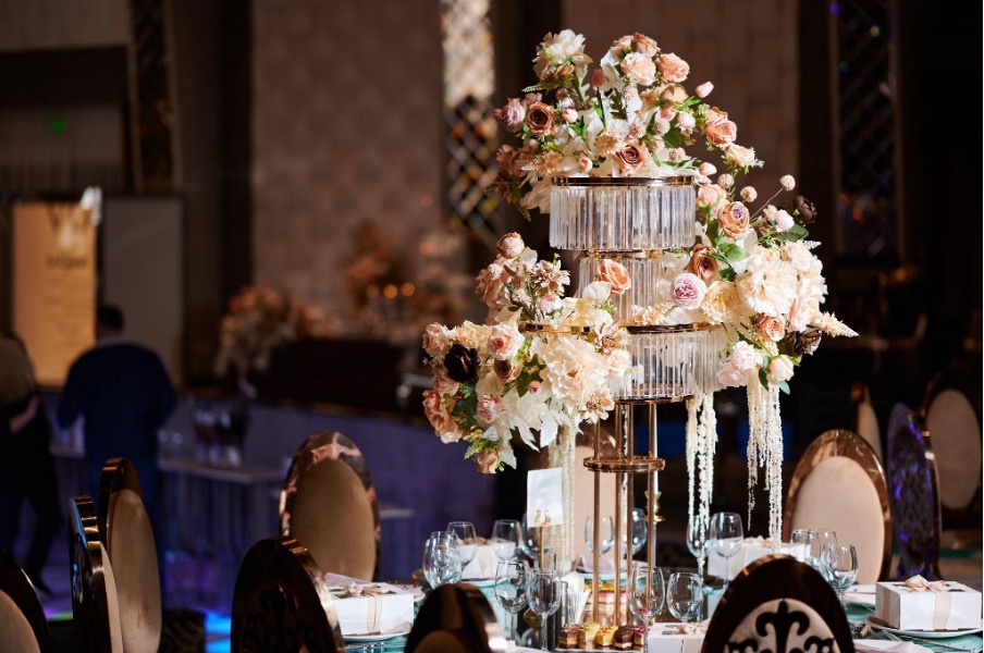 Pentru Castel Ballroom, Gardenia Events a mizat pe o combinatie spectaculoasa de flori naturale si flori de matase, un mix ideal care imbina frumusetea efemera a naturii cu avantajele longevitatii. Florile naturale adauga prospetime si autenticitate, in timp ce aranjamentele din matase completeaza perfect decorul, pastrandu-si forma impecabila de-a lungul intregului eveniment.