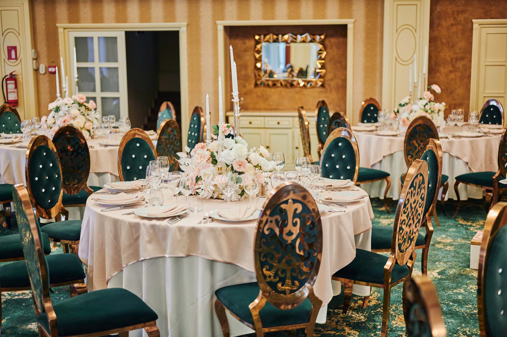 Candelabrele sale prețioase care emană lumina caldă a unui regat îndepărtat, cu sute de cristale strălucitoare, oferind o atmosferă de vis și magie.